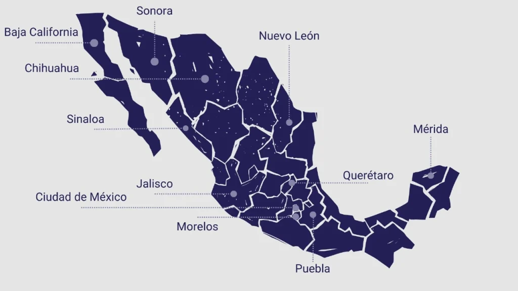 Contamos con una sólida presencia a nivel nacional, operando desde 11 oficinas regionales estratégicamente ubicadas en todo el país. Estas oficinas nos permiten coordinar y supervisar de manera efectiva nuestros diversos proyectos, asegurando que nuestros servicios estén siempre alineados con las necesidades de nuestros clientes y partes interesadas.